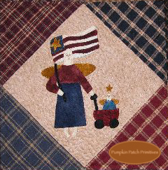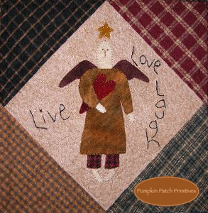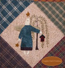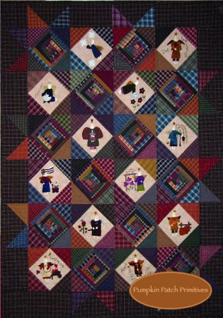 This quilt pattern features an Angel for each month of the year. All the angels are appliqued in wool & include a bit of stitchery. The Angel Blocks are set alternating with homespun Log Cabin Blocks.