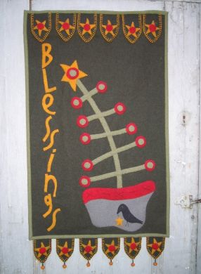You can complete this wall hanging Penny Rug in a weekend. Make it in hand dyed woolens, in wool felt or even flannels, I'm sure that it would look gorgeous any way you made it.